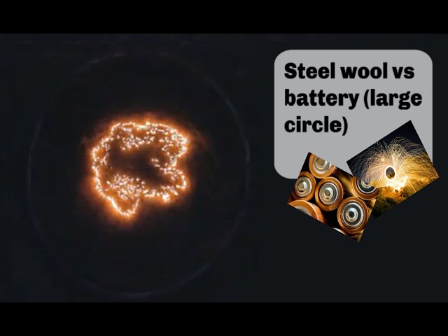 Using a 9 volt battery to light a large disk of steel wool.