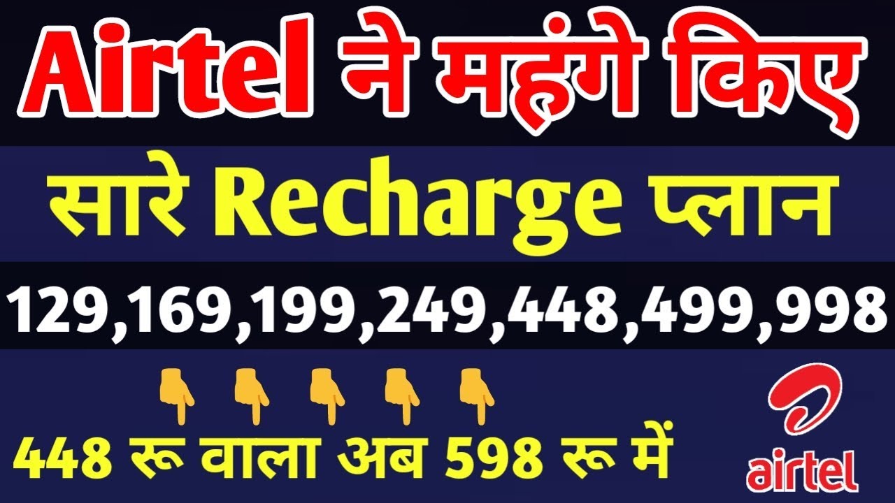 Hello friend today I am describe that Airtel new recharge plan can you know that Airtel increase our all recharge plan in December 3 in 30 December Airtel increase all new power recharge plan like a increase 40% increase our recharge plan like a 35 65 910 129 169 199 249 to 448 499 998 999 all recharge plan increase 40%