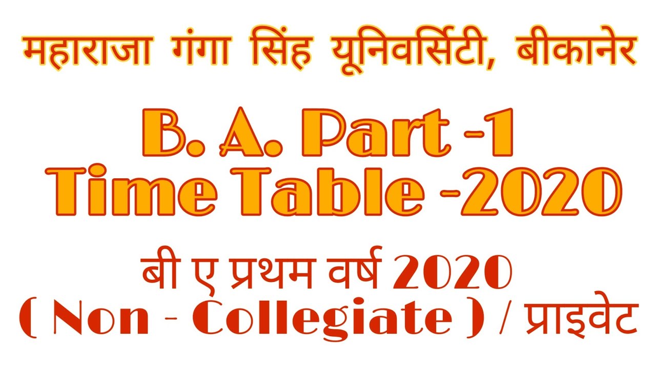 mgsu,ba part 1 timetable 2020 first year nc non collegiate student,maharaja ganga singh university,