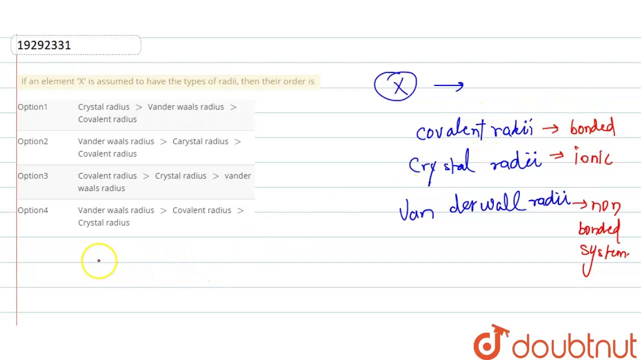 If an element |'X|' is assumed to have the types of radii, then their order is