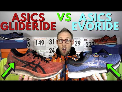 A comparison of two shoes from the Asics Energy Saving collection, the EvoRide and the GlideRide. Both have similar midsole technology but with different stack heights and a rather different feel on foot. 1 suits the long run at lesser pace and the other is more a tempo shoe with slightly lighter weight.