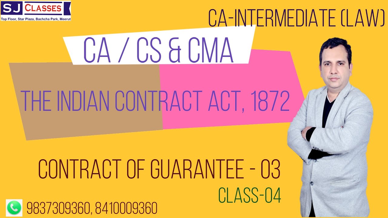 This is lecture of CA INTERMEDIATE LAW Paper. In this class SANJAY SIR explained the topic "CONTRACT OF GUARANTEE UNDER THE INDIAN CONTRACT ACT, 1872". Happy Learning :)
